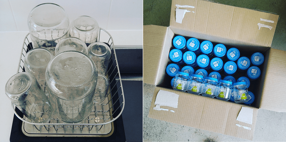 유리병과 종이포장재를 활용한 주방 수납 최적화