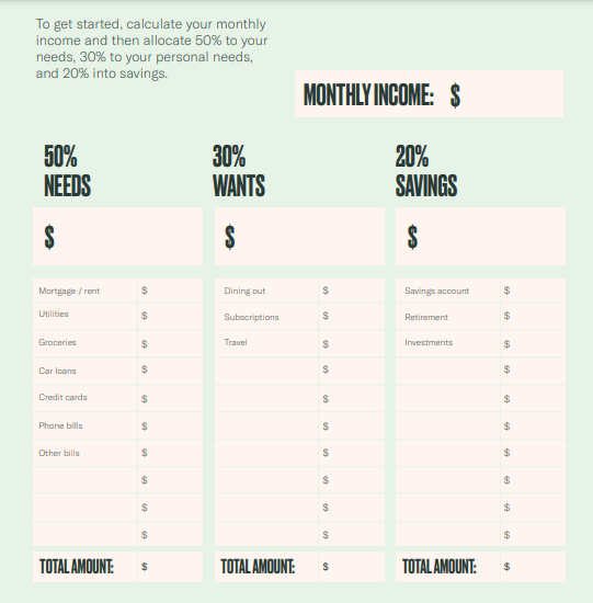 50:30:20 황금 비율로 예산 배분하기(예시)